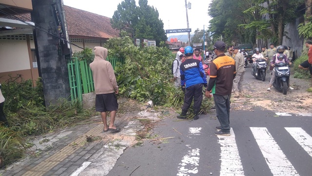 Kejadian ketiga terjadi di Jalan Ahmad Yani, kawasan Plengkung, pada pukul 09.50 WIB. Pohon tumbang di lokasi ini menimpa tiang listrik dan menyebabkan kabel PLN berserakan serta menutup akses jalan. TAGANA melakukan pemotongan pohon dan pengamanan area demi keselamatan pengguna jalan.