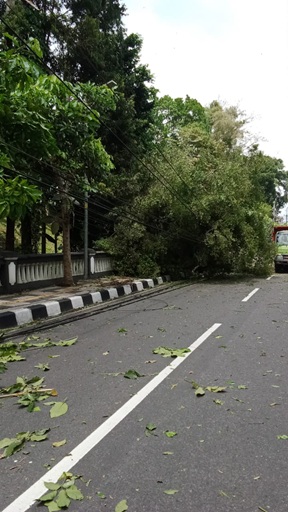 Selain itu, pada pukul 11.45 WIB, pohon kelapa tumbang di Jalan Sunan Giri, Perumahan Villa Gading Mas 5, dan menimpa satu rumah warga. Penanganan masih dalam tahap perundingan mengingat kondisi pohon yang tinggi serta akses lokasi yang sempit dan padat penduduk.